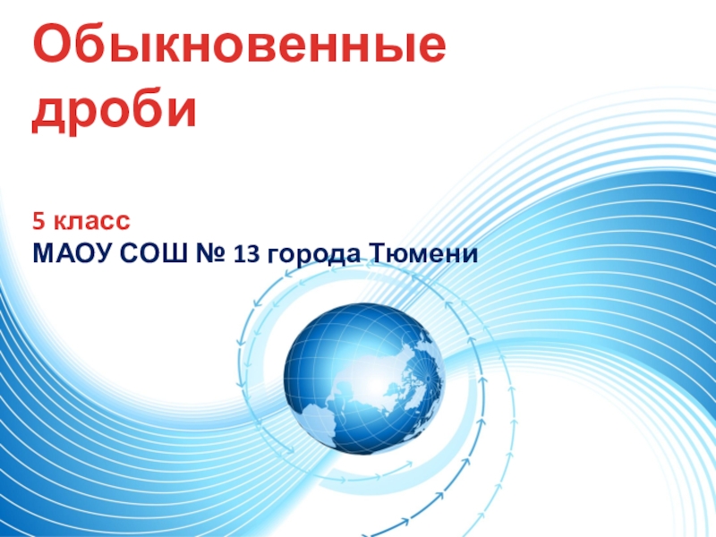 Слайд 1Обыкновенные дроби 5 класс МАОУ СОШ № 13 города Тюмени