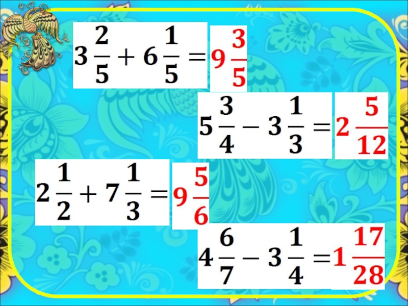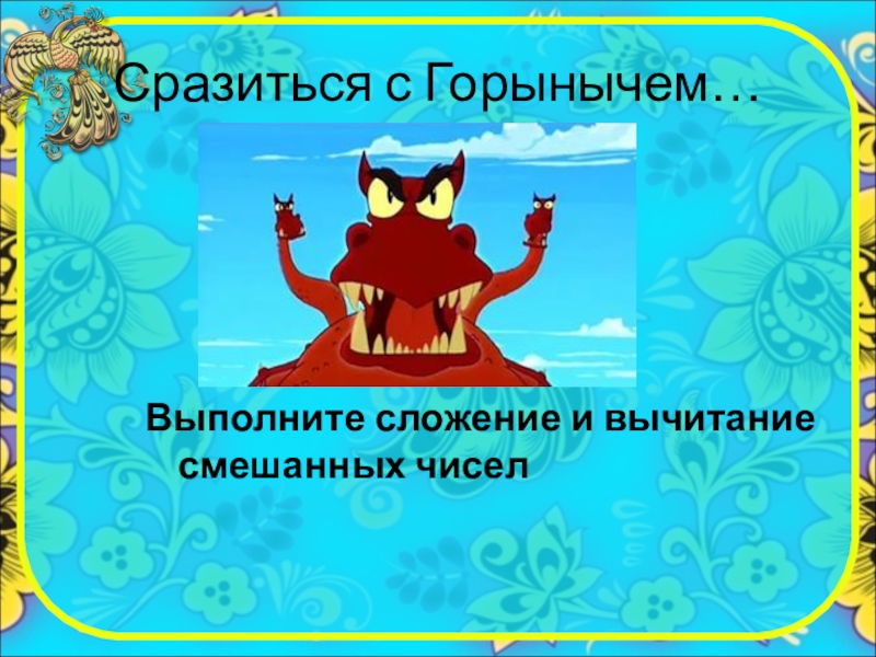 Сразиться с Горынычем…  Выполните сложение и вычитание смешанных чисел