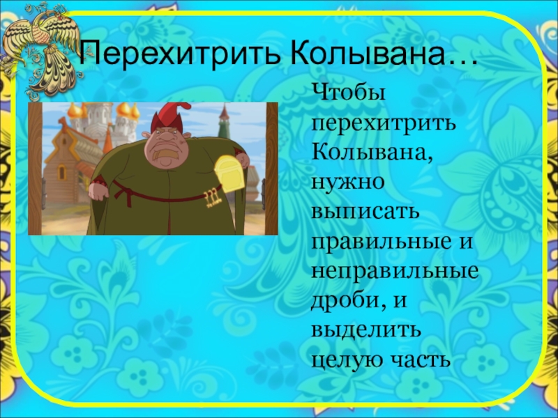 Перехитрить Колывана…Чтобы перехитрить Колывана, нужно выписать правильные и неправильные дроби, и выделить целую часть