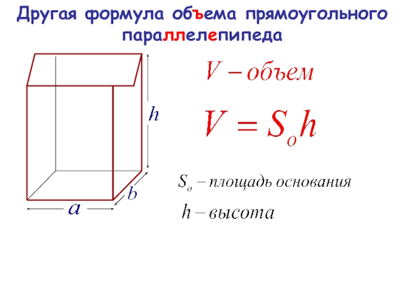Слайд 15Другая формула объема прямоугольного параллелепипеда