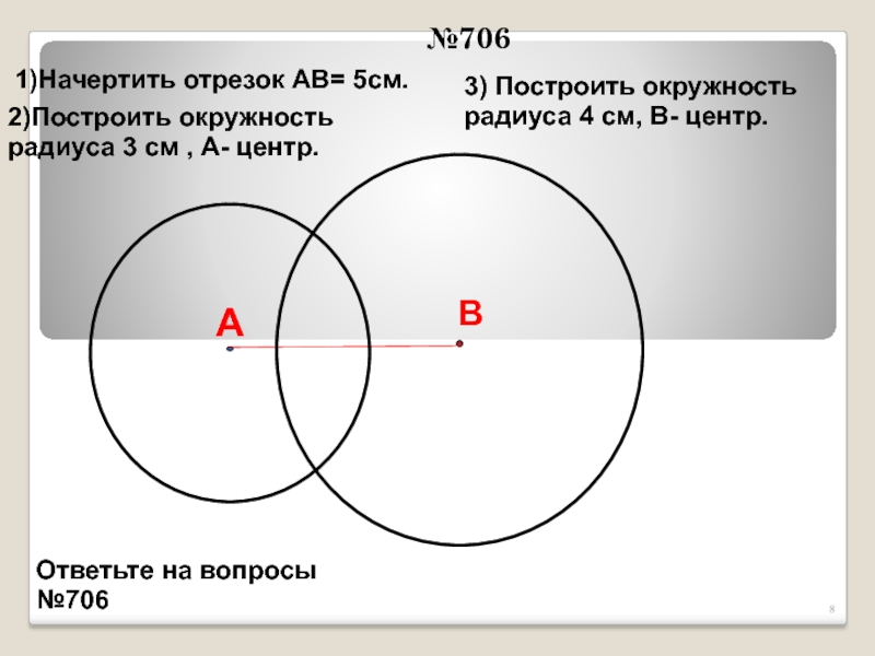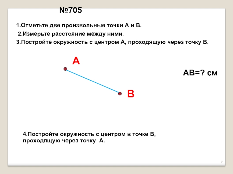 4.Постройте окружность с центром в точке В, проходящую через точку А.