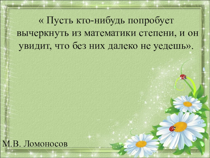 Слайд 2« Пусть кто-нибудь попробует вычеркнуть из математики степени, и он увидит,
