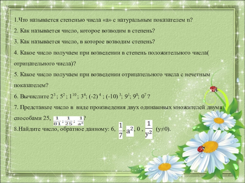 1.Что называется степенью числа «а» с натуральным показателем n?