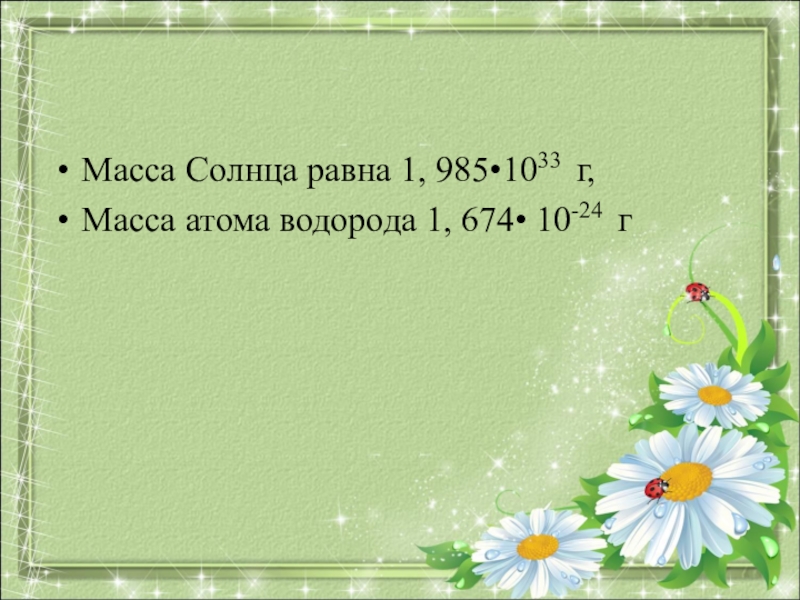 Слайд 6Масса Солнца равна 1, 985•1033 г,