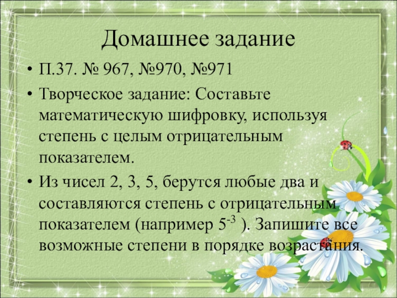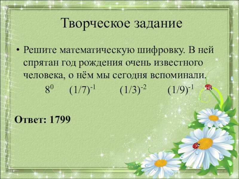 Творческое задание: Составьте математическую шифровку,