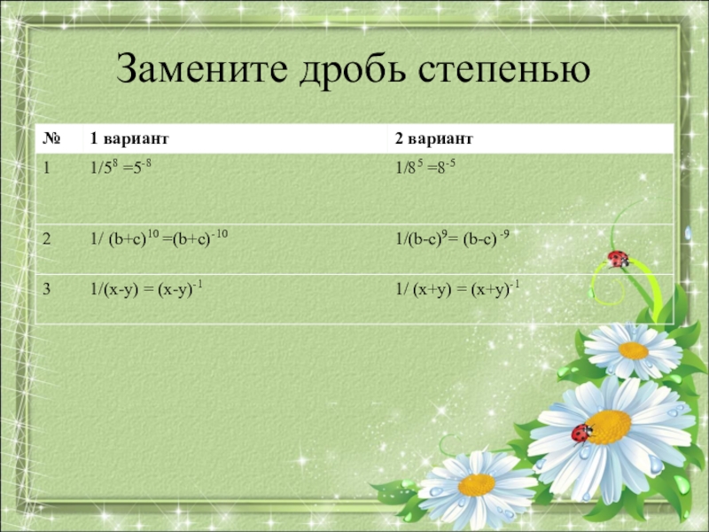 используя степень с целым отрицательным показателем.