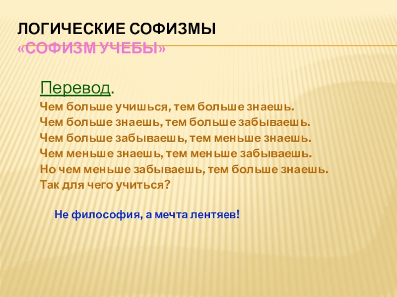 «Софизм учебы»