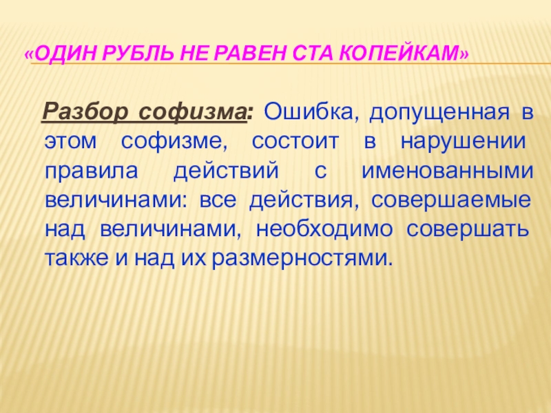 Слайд 13«Один рубль не равен ста копейкам»