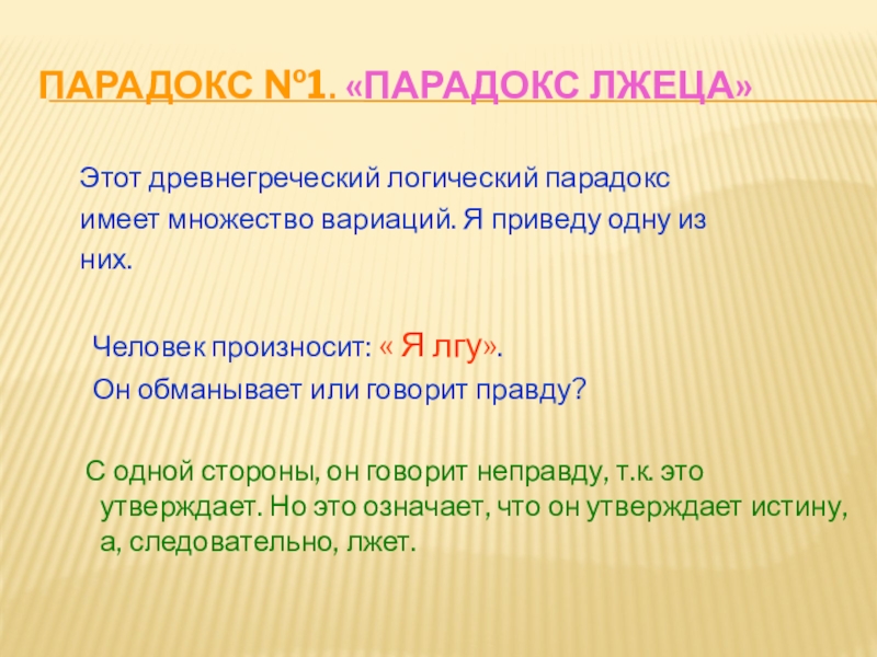 Слайд 26Парадокс №1. «Парадокс лжеца»