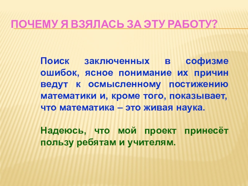 Слайд 2Почему я взялась за эту работу?