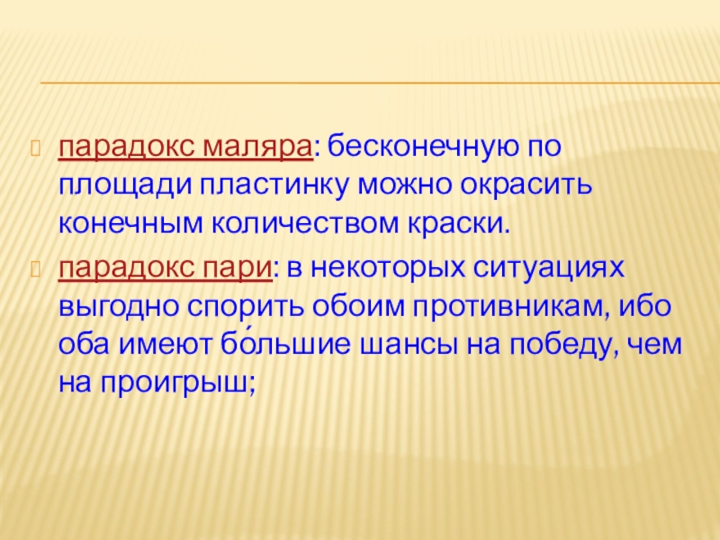 Слайд 23парадокс маляра: бесконечную по площади пластинку можно окрасить конечным количеством краски.