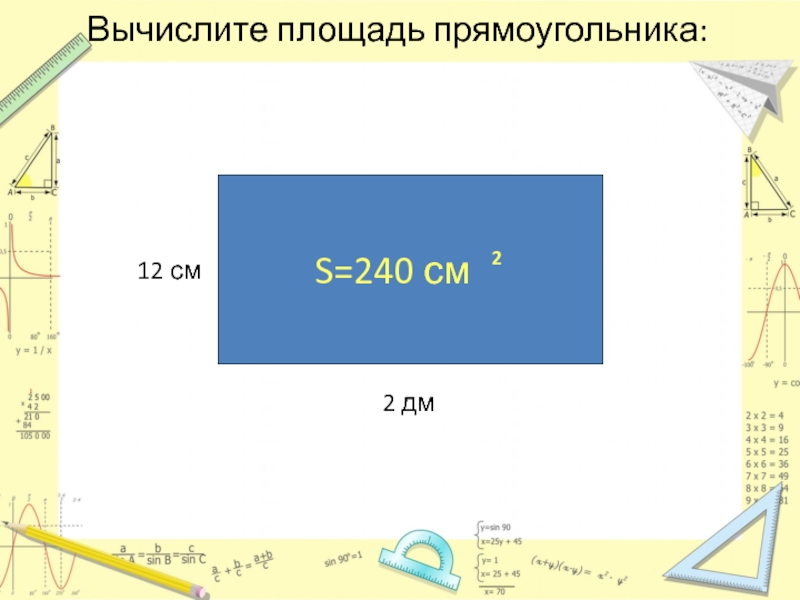 Вычислите площадь прямоугольника:1,5 м10 дм