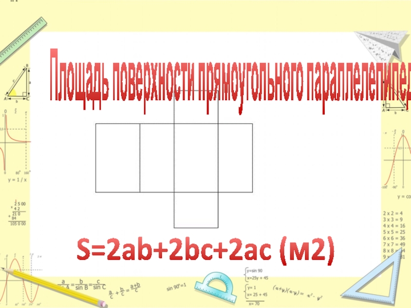 Слайд 19Площадь поверхности прямоугольного параллелепипеда