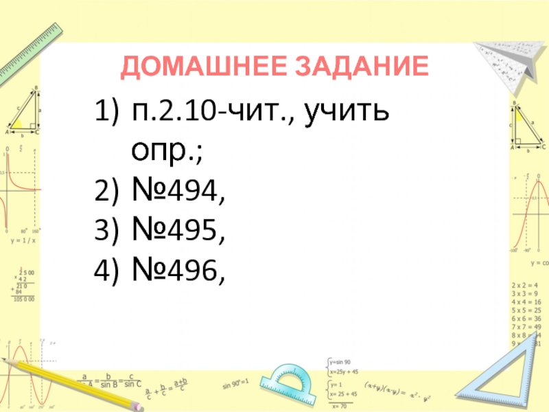 ДОМАШНЕЕ ЗАДАНИЕп.2.10-чит., учить опр.; №494, №495, №496,