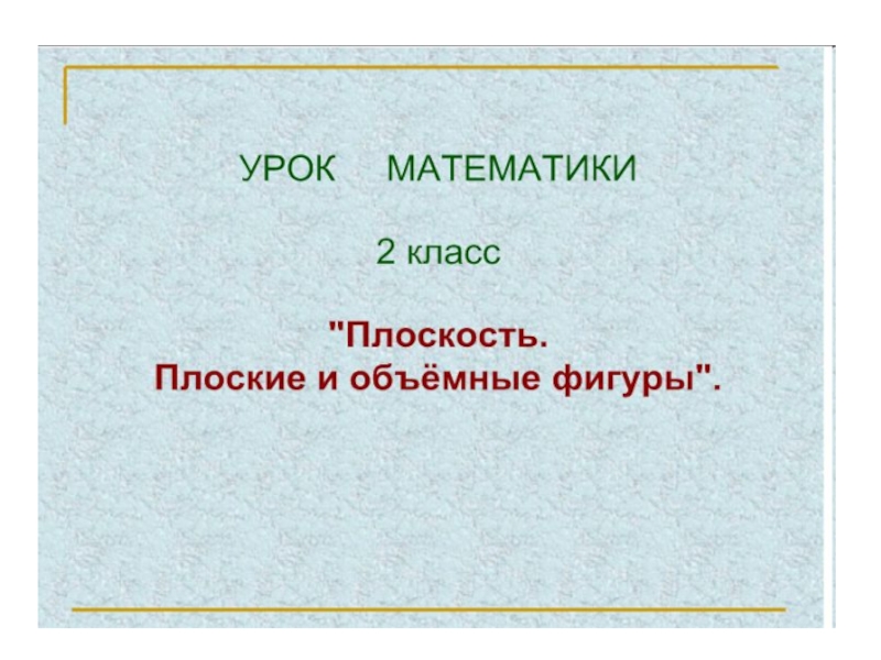 Презентация по математике Плоские и объёмные фигуры Математика