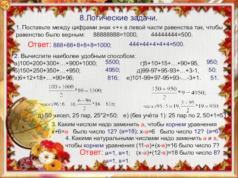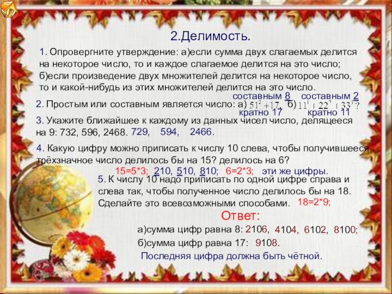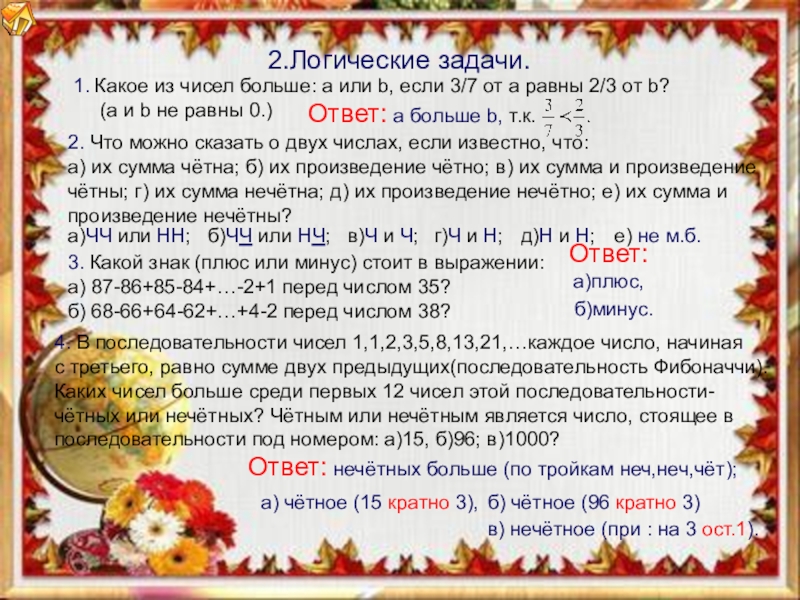 чётны; г) их сумма нечётна; д) их произведение нечётно; е) их сумма и