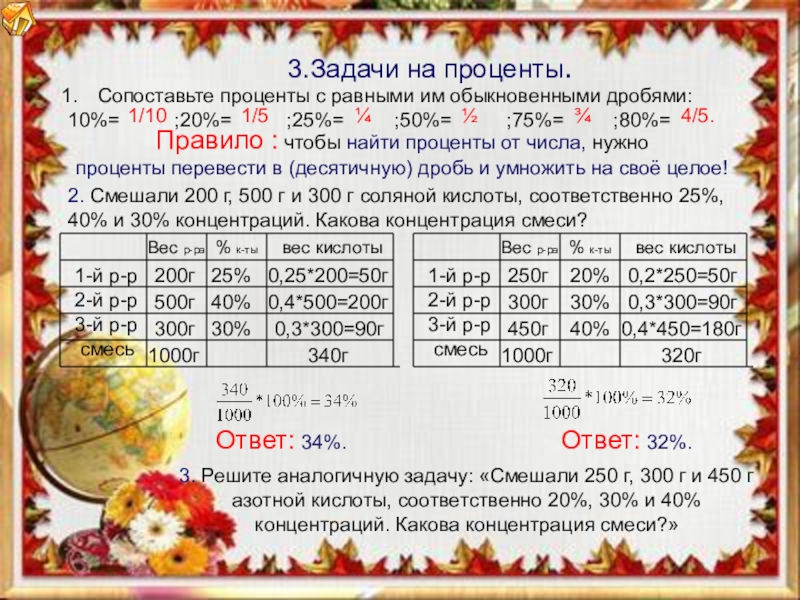 3. Решите аналогичную задачу: «Смешали 250 г, 300 г и 450 г