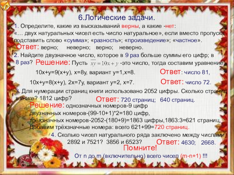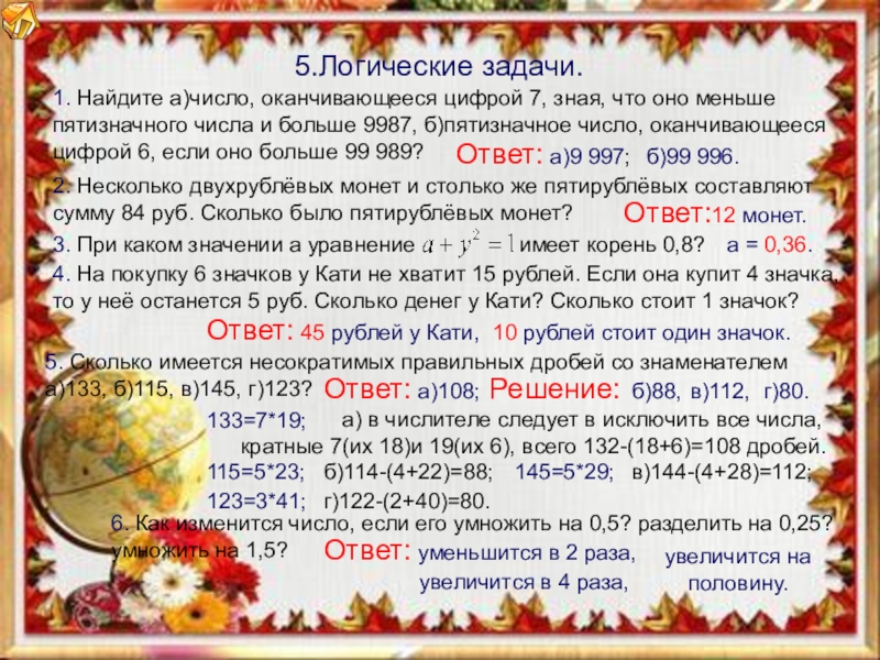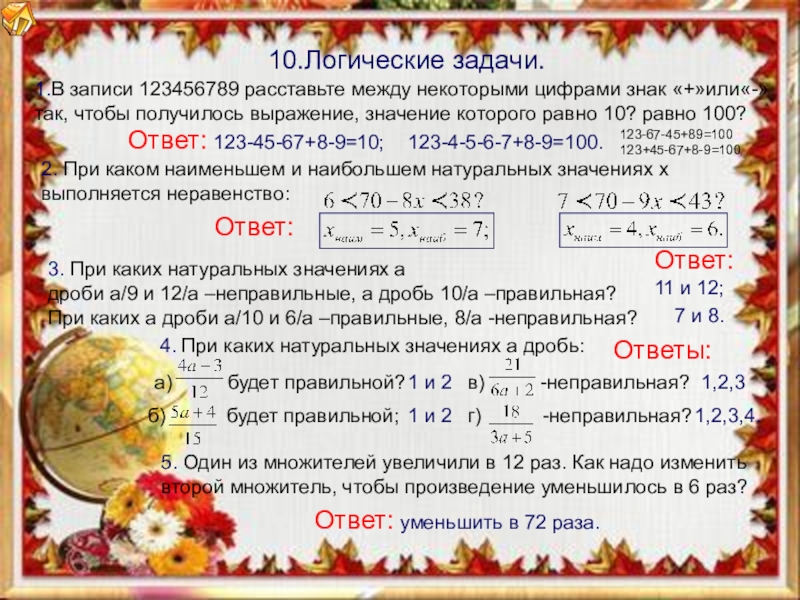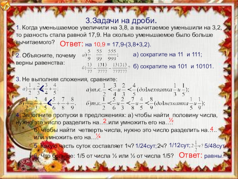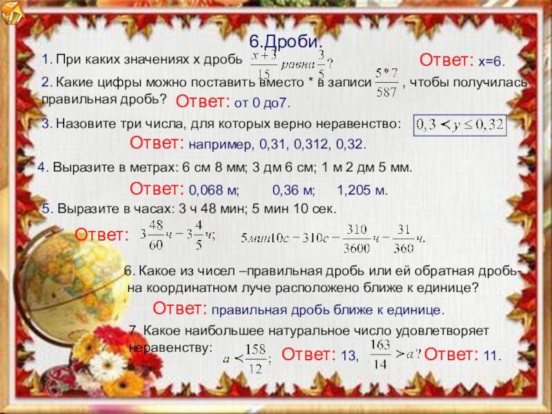 6. Что больше: 1/5 от числа ½ или ½ от числа 1/5?