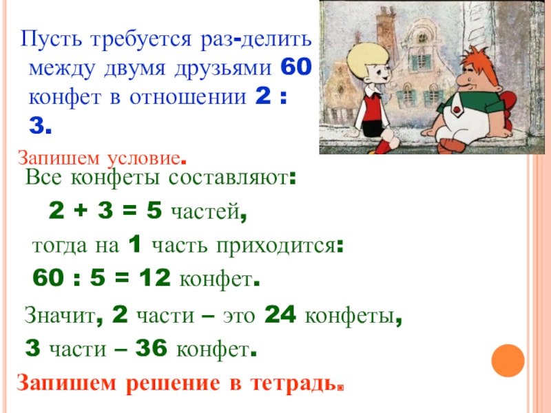 2 + 3 = 5 частей,