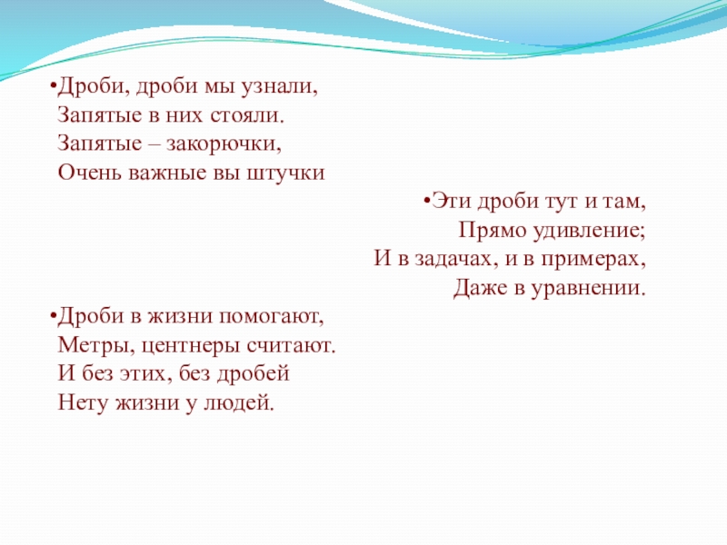 В школе дроби мы узнали