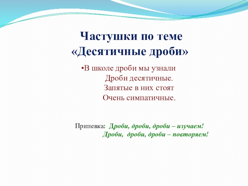 Частушки по теме «Десятичные дроби»