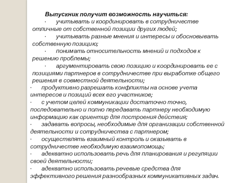 · продуктивно разрешать конфликты на основе учета интересов и позиций всех его участников;