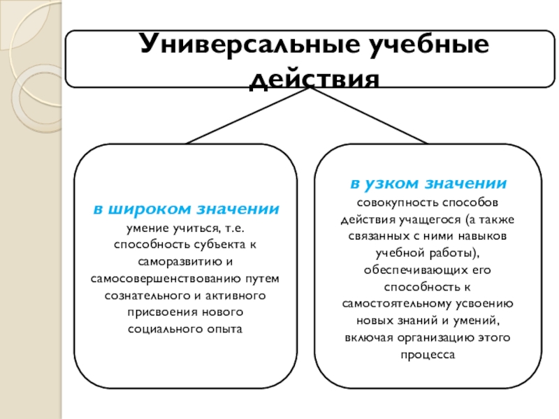 в узком значении совокупность способов действия учащегося (а также связанных с ними навыков учебной работы), обеспечивающих его способность к самостоятельному усвоению новых знаний и умений, включая организацию этого процесса