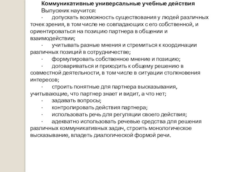 · с учетом целей коммуникации достаточно точно, последовательно и полно передавать партнеру необходимую информацию как ориентир для построения действия;