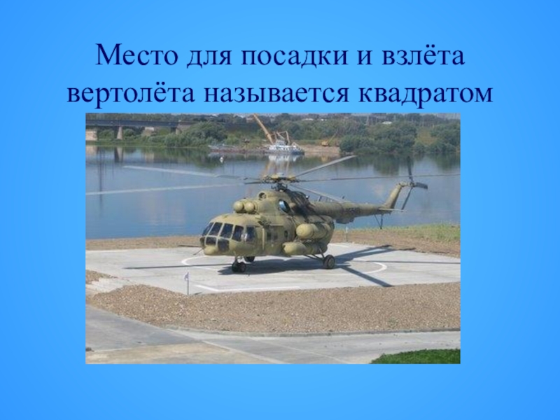 Слайд 16Место для посадки и взлёта вертолёта называется квадратом