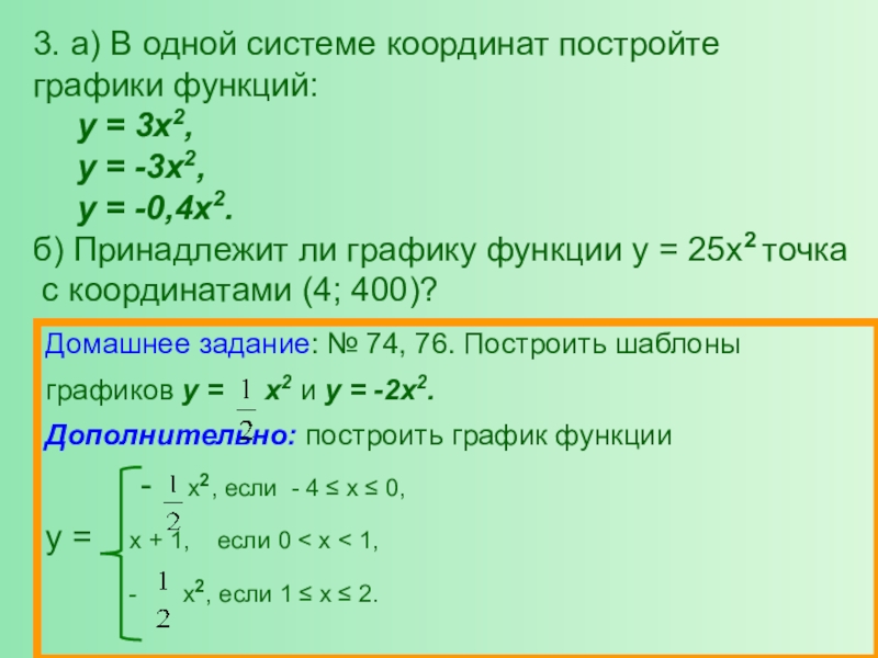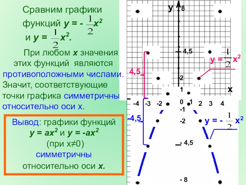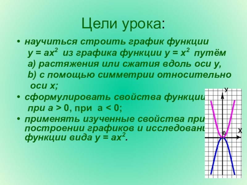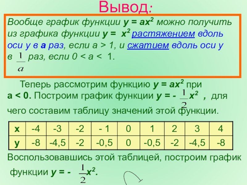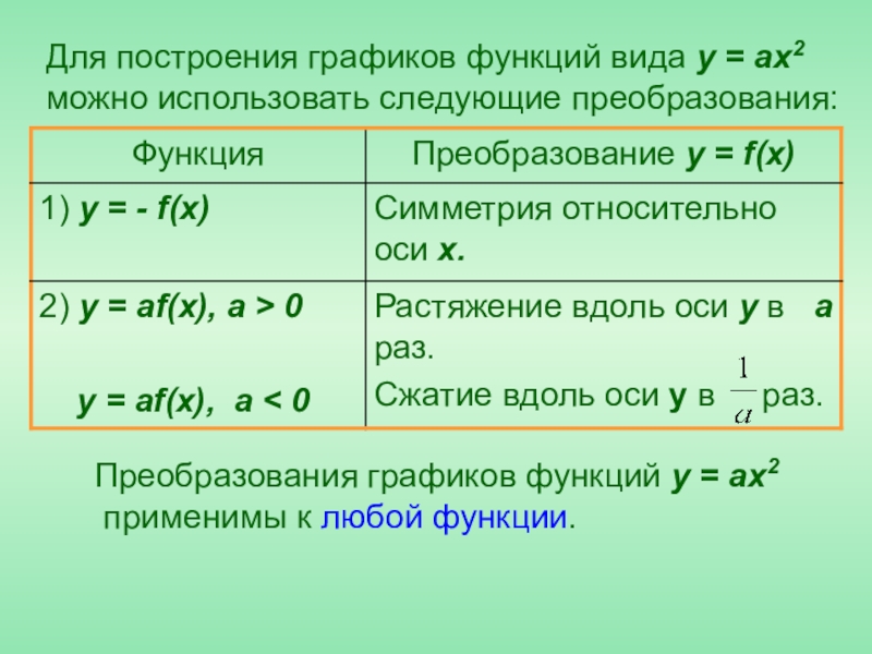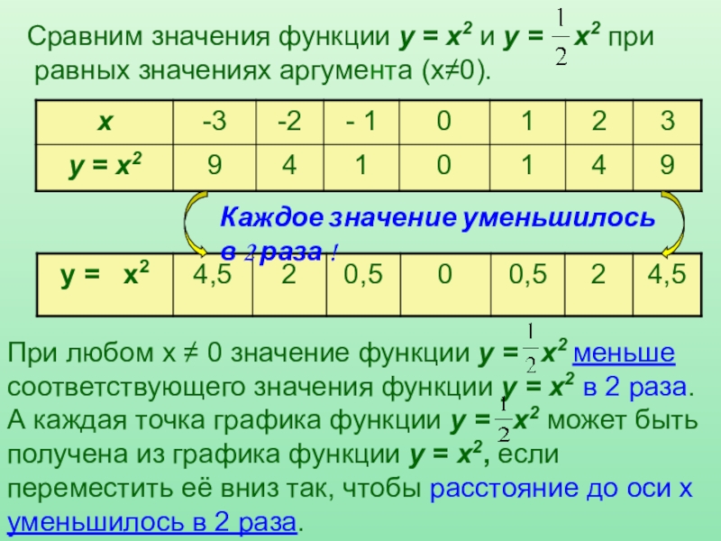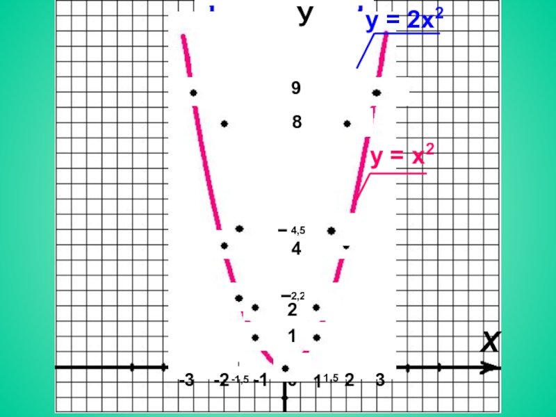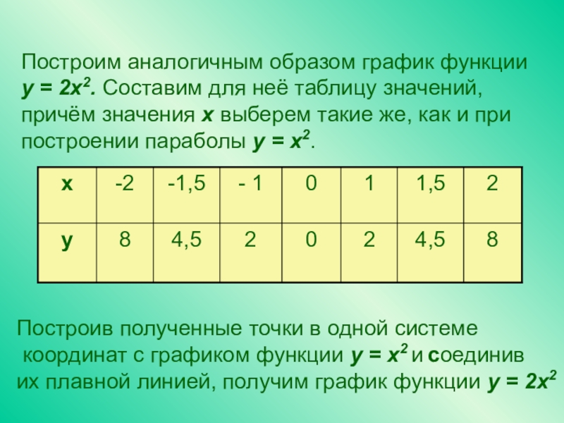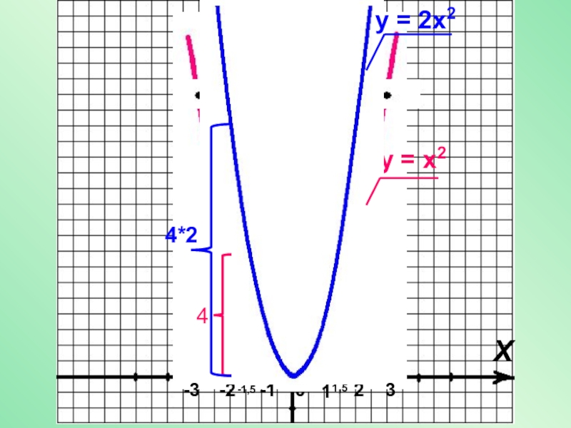 При этом каждая точка графика у = 2х2 может быть получена из точки графика у = х2, если расстояние от этой точки до оси х увеличить в 2 раза.
