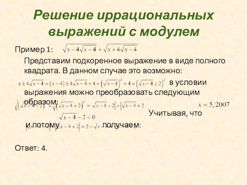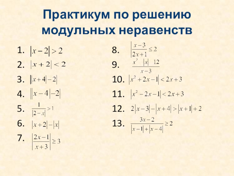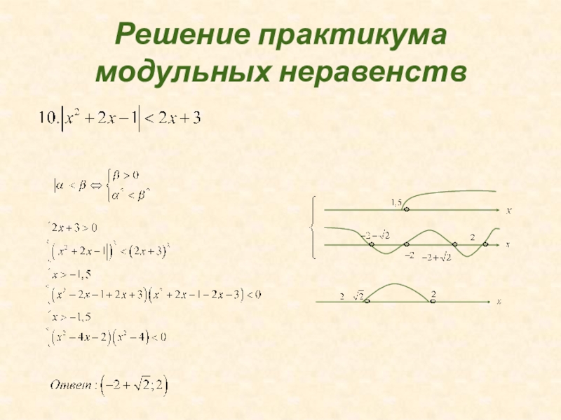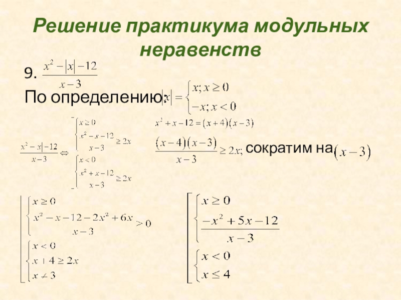 Слайд 9Применение определения модуля и свойств модульных неравенств при решении задач