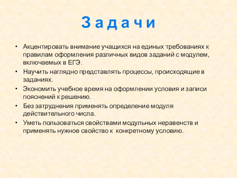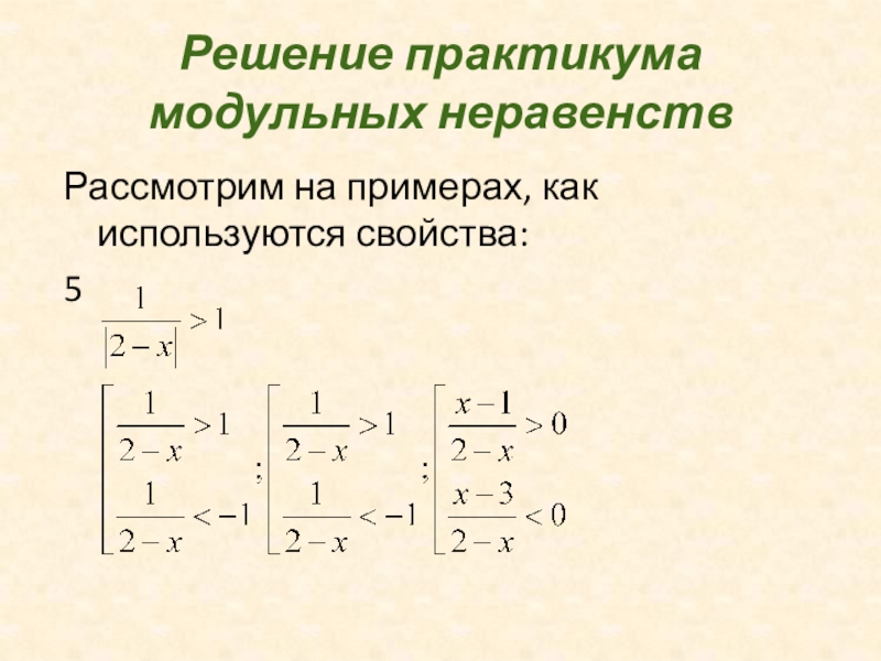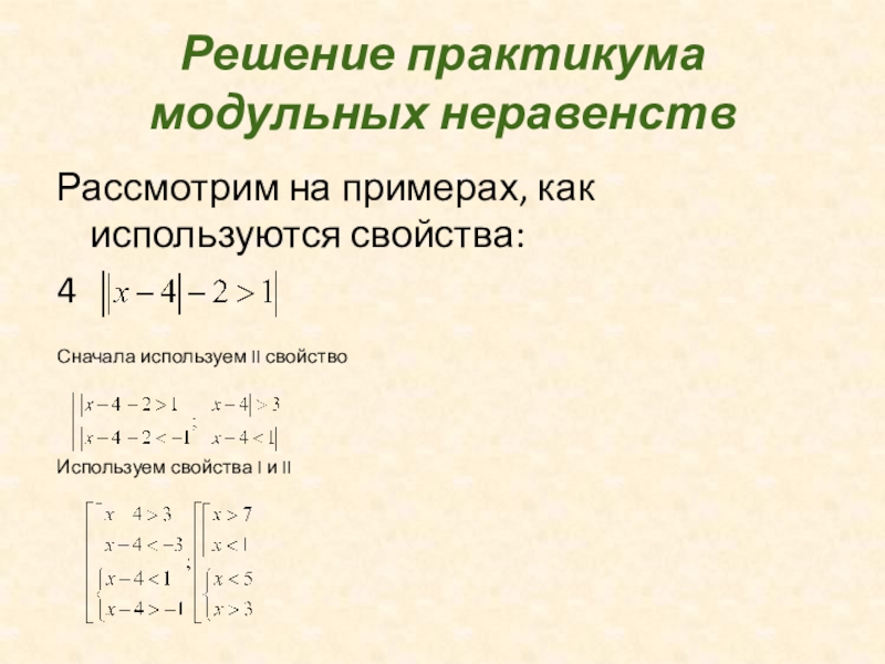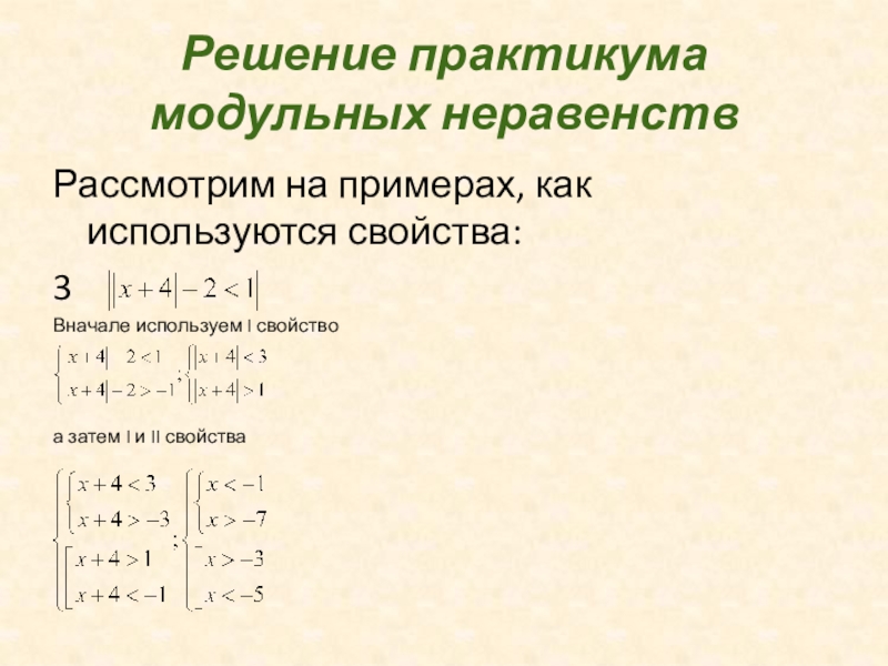 Уметь пользоваться свойствами модульных неравенств и применять нужное свойство к конкретному условию.