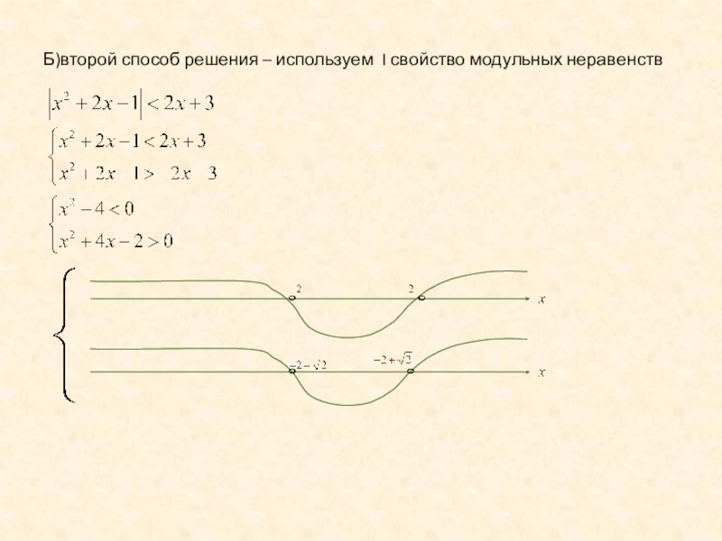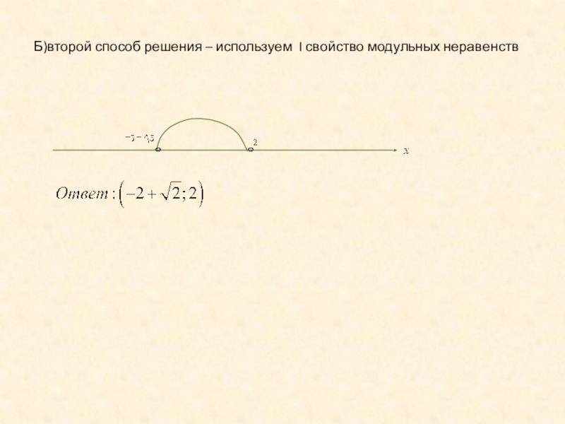 Слайд 38Б)второй способ решения – используем I свойство модульных неравенств