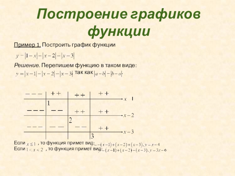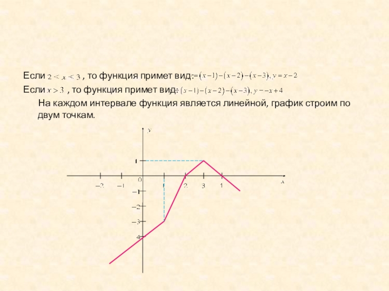 На каждом интервале функция является линейной, график строим по двум точкам.