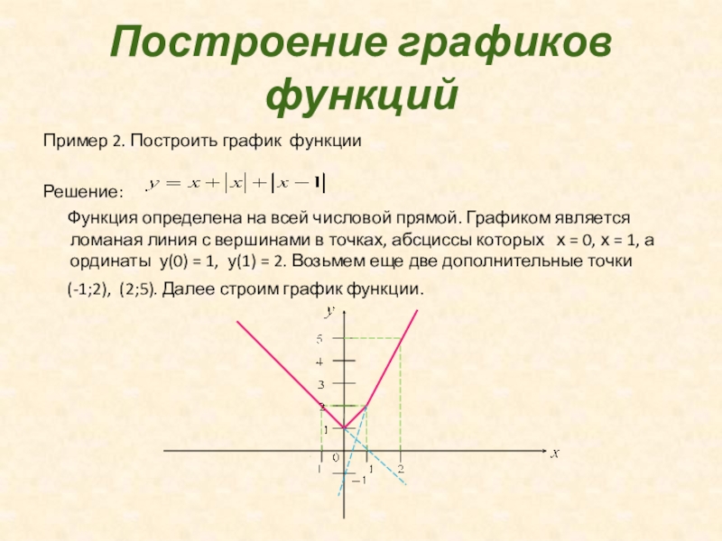 на всей числовой прямой. Графиком является ломаная линия с вершинами в точках, абсциссы которых х = 0, х = 1, а ординаты у(0) = 1, у(1) = 2. Возьмем еще две дополнительные точки