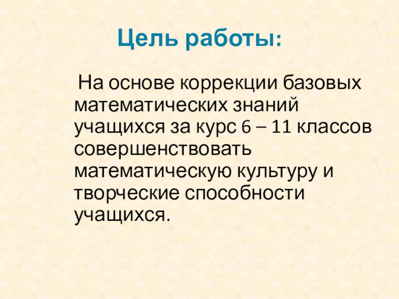 курс 6 – 11 классов совершенствовать математическую культуру и творческие способности учащихся.