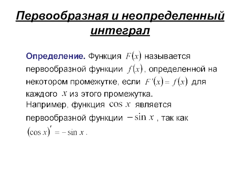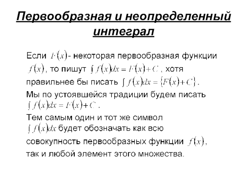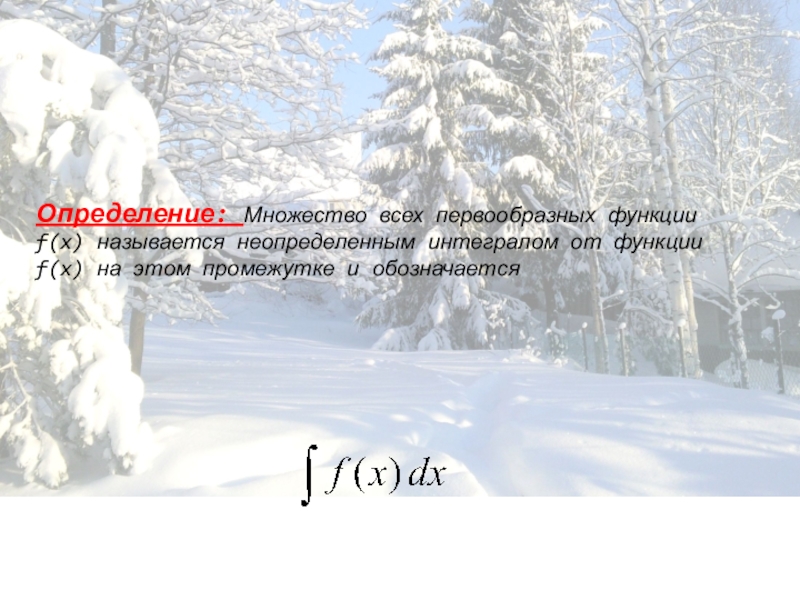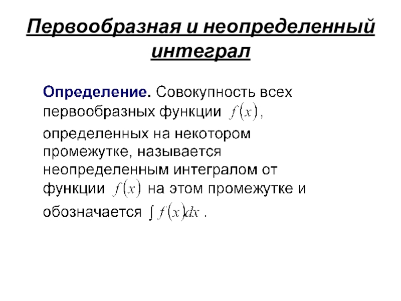 Определение: Множество всех первообразных функции f(x) называется неопределенным интегралом от функции f(x) на этом промежутке и обозначается