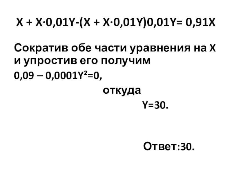 X + X·0,01Y-(X + X·0,01Y)0,01Y= 0,91X.