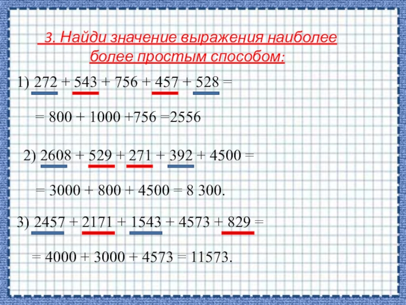 3) 2457 + 2171 + 1543 + 4573 + 829 =