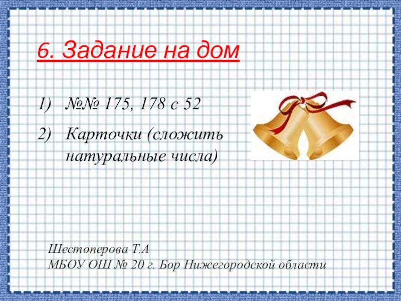 Шестоперова Т.А МБОУ ОШ № 20 г. Бор Нижегородской области