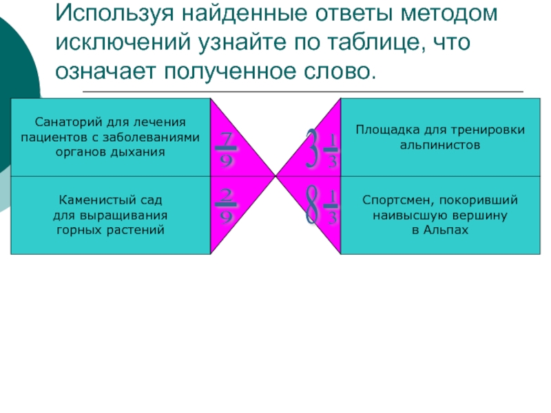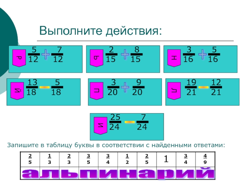 Из букв, связанных с такими дробями составьте слово, которое является переводом тюркского слова «тай» и кельтского слова «альп»