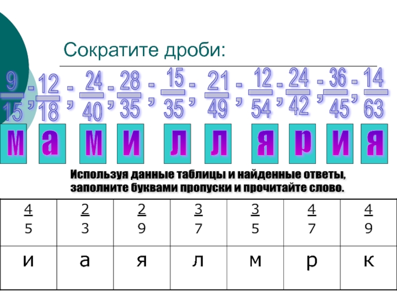 Запишите в таблицу буквы в соответствии с найденными ответами: