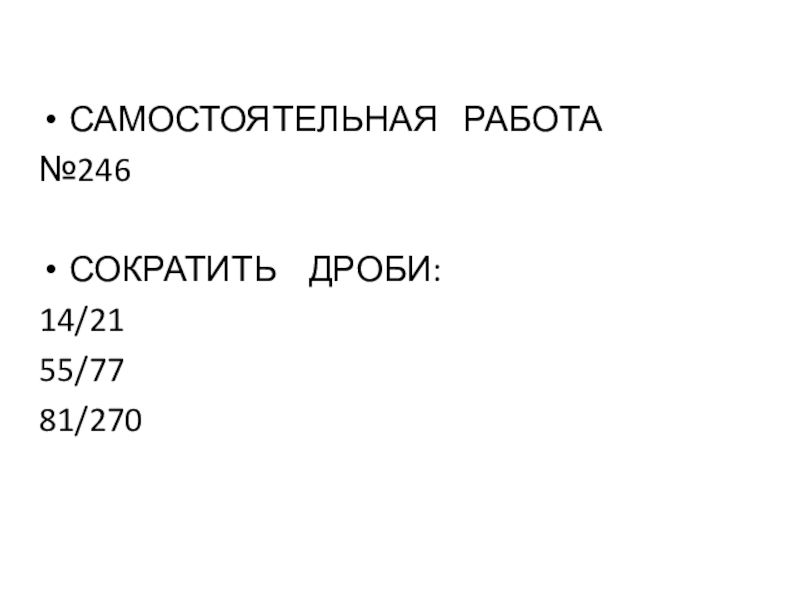 САМОСТОЯТЕЛЬНАЯ  РАБОТА№246СОКРАТИТЬ  ДРОБИ:14/2155/7781/270
