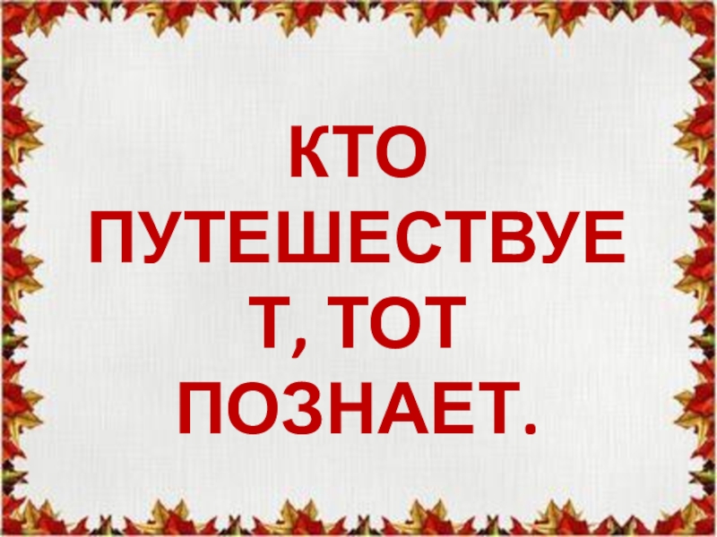 Слайд 2КТО ПУТЕШЕСТВУЕТ, ТОТ ПОЗНАЕТ.