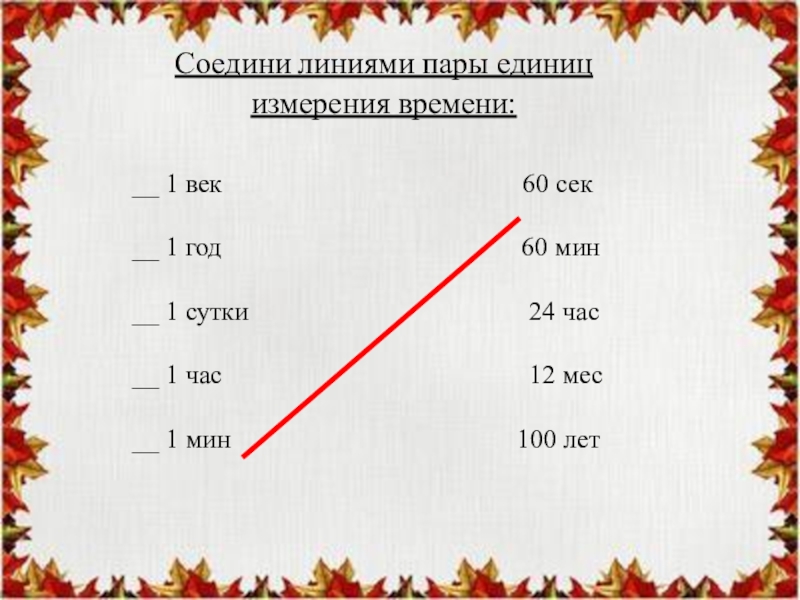 Слайд 16Соедини линиями пары единиц измерения времени: