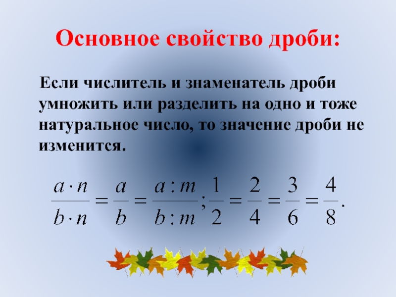 Слайд 13Основное свойство дроби: