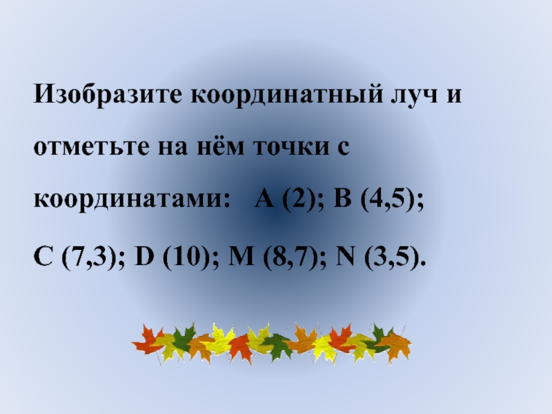 Слайд 8Изобразите координатный луч и отметьте на нём точки с координатами: