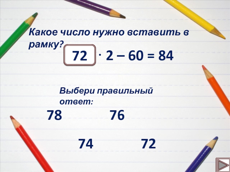 · 2 – 60 = 84Какое число нужно вставить в рамку?72