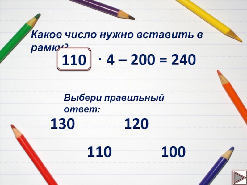 · 4 – 200 = 240 Какое число нужно вставить в рамку?110