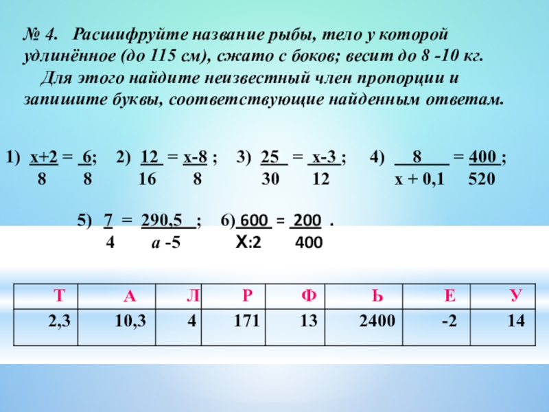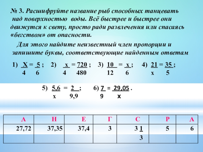 1) Х = 5 ; 2) х = 720 ; 3) 10 = х ; 4) 21 = 35 ;